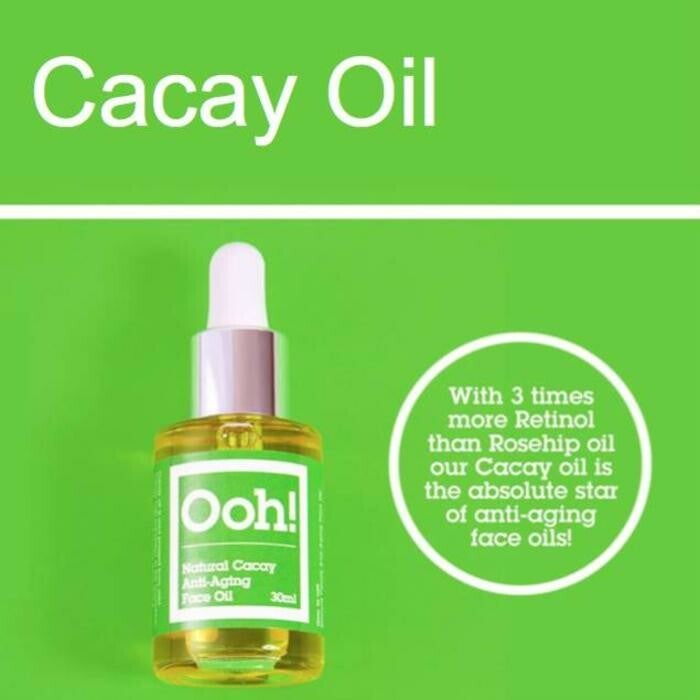 Dit vegan gezichtsserum is daarnaast erg rijk aan vitamine A (retinol), vitamine F en essentiële vetzuren. Cacay olie kan op verschillende manieren toegepast worden. Het heeft een hydraterende, verzachtende en egaliserende werking op de huid. Het staat ook bekend om de anti-ageing eigenschappen en het is in staat om littekentjes te vervagen. Vegan huidverzorging.