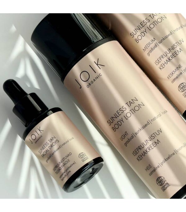 JOIK's vegan Sunless Tan Bodylotion Light is een sneldrogende, hydraterende en niet-kleverige zelfbruinende bodylotion voor een geleidelijke, natuurlijk ogende 'sunkissed look'.