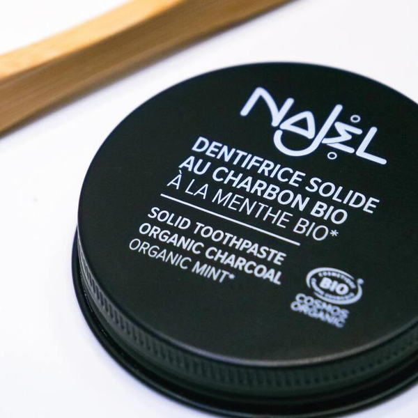 Najel heeft deze fluorvrije tandpasta gemaakt met als belangrijkste ingrediënt: de biologische olijfolie. De toevoeging van organische houtskool, bekend om zijn reinigende en zuiverende eigenschappen, helpt de tanden witter te maken, zoals de hydroxyapatiet, een mineralisator die ook het glazuur witter maakt en de overgevoeligheid van de tanden vermindert.