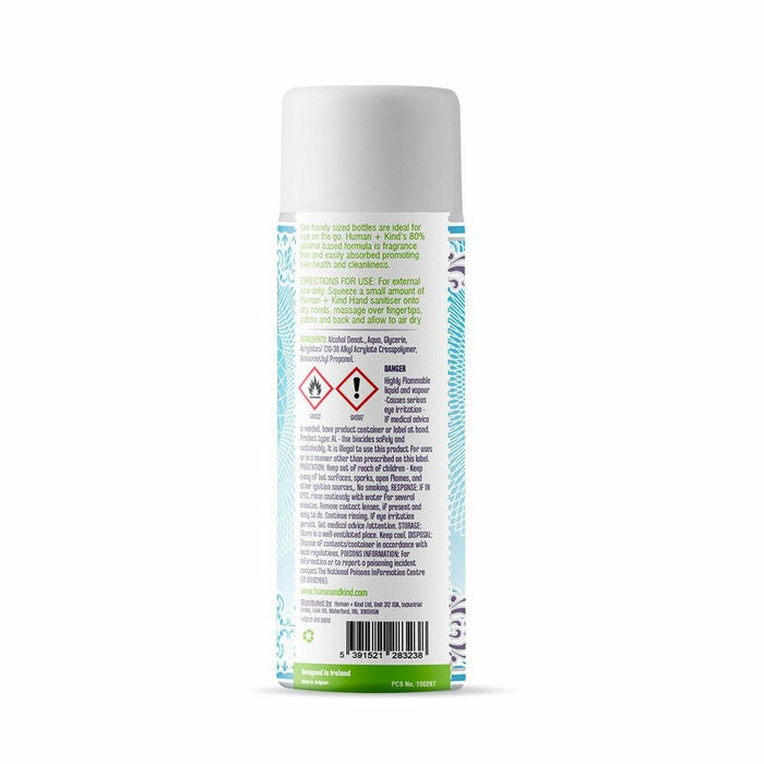 De op alcohol gebaseerde formule van Human + Kind is geurvrij, wordt gemakkelijk opgenomen en maakt je handen schoon en vrij van bacteriën.