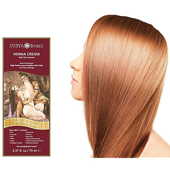 Surya Brasil is van alle natuurlijke haarverf de beste in het dekken van grijze haren Een de haarverf bevat geen ammoniak, geen ppd, geen parabenen, geen peroxide, geen resorcinol, geen zware metalen, geen kunstmatige geurstoffen, geen siliconen, geen butylhydroxytolueen, geen formaldehyde, geen minerale olie en geen genetisch gemodificeerde grondstoffen.