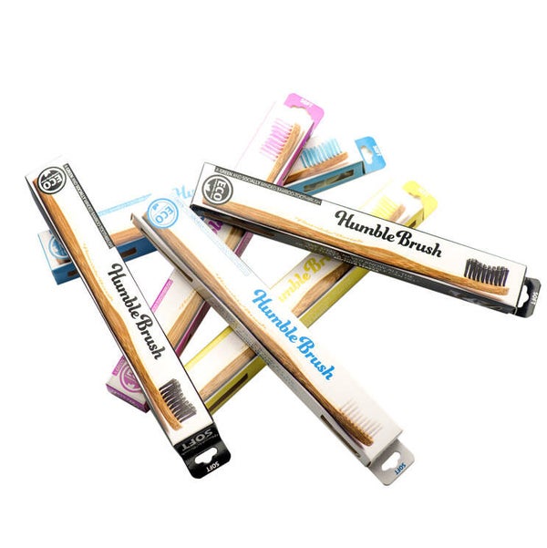 Humble Brush. ’s Werelds fijnste tandenborstel van bamboe. Het handvat is gemaakt van 100% bamboe en de borstelharen bevatten geen BPA. Hij poetst net zo goed als een gewone, plastic tandenborstel, maar is stukken duurzamer. En hij heeft ook nog eens een prachtig design. Een aanwinst voor je badkamer en het milieu!